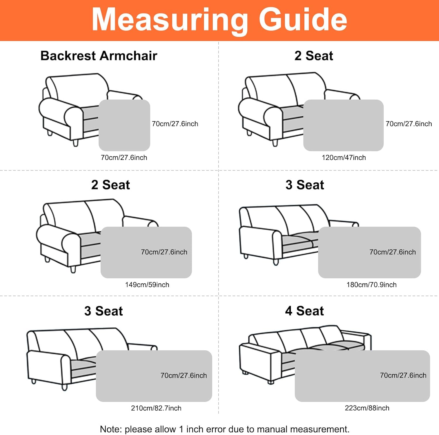 4 Sizes:27.6" x 59", 27.6" x 70.9", 27.6" x 82.7",27.6" x 27.6"