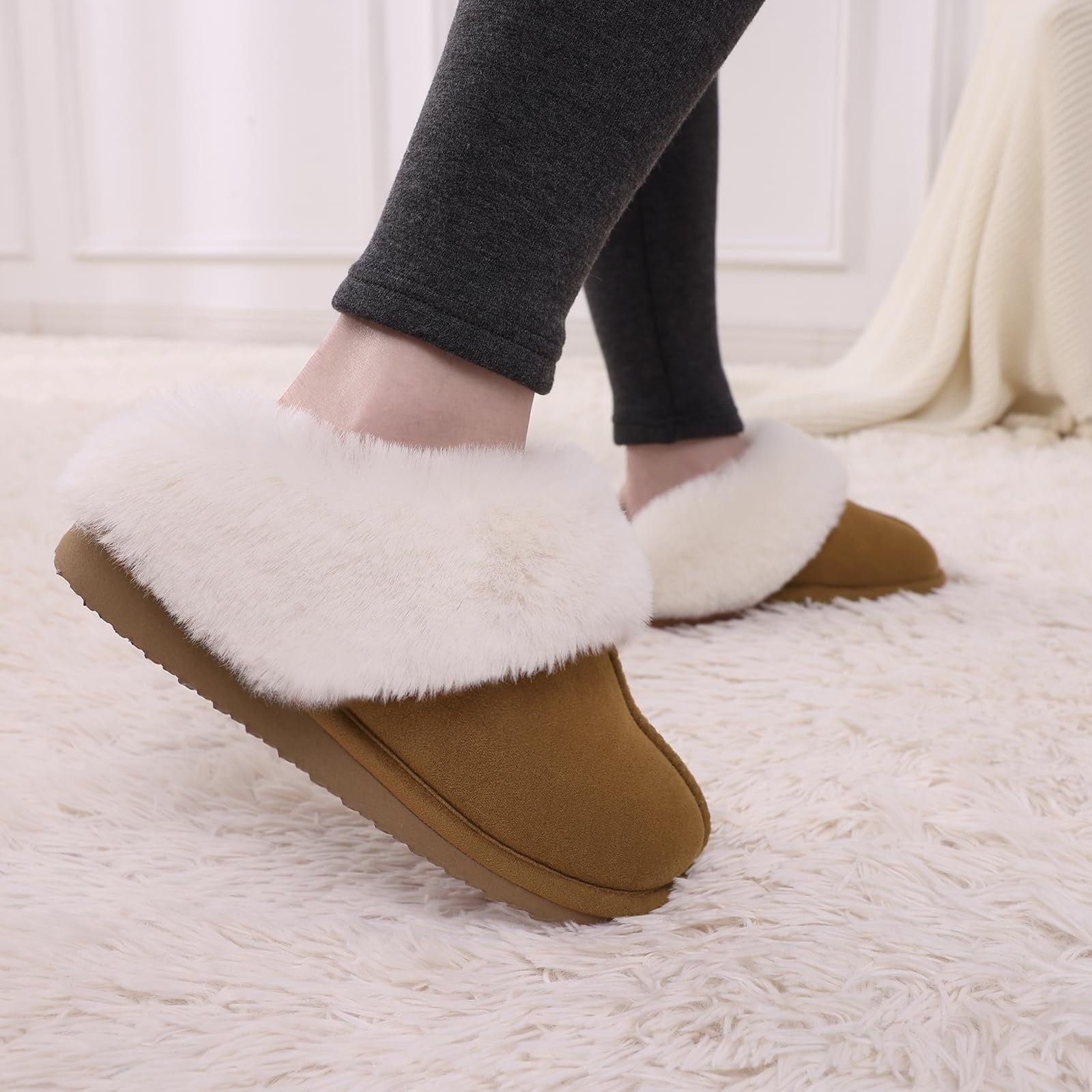 Litfun Fuzzy Memory Foam House Slippers for Women Fluffy Suede Slippers with Faux Fur