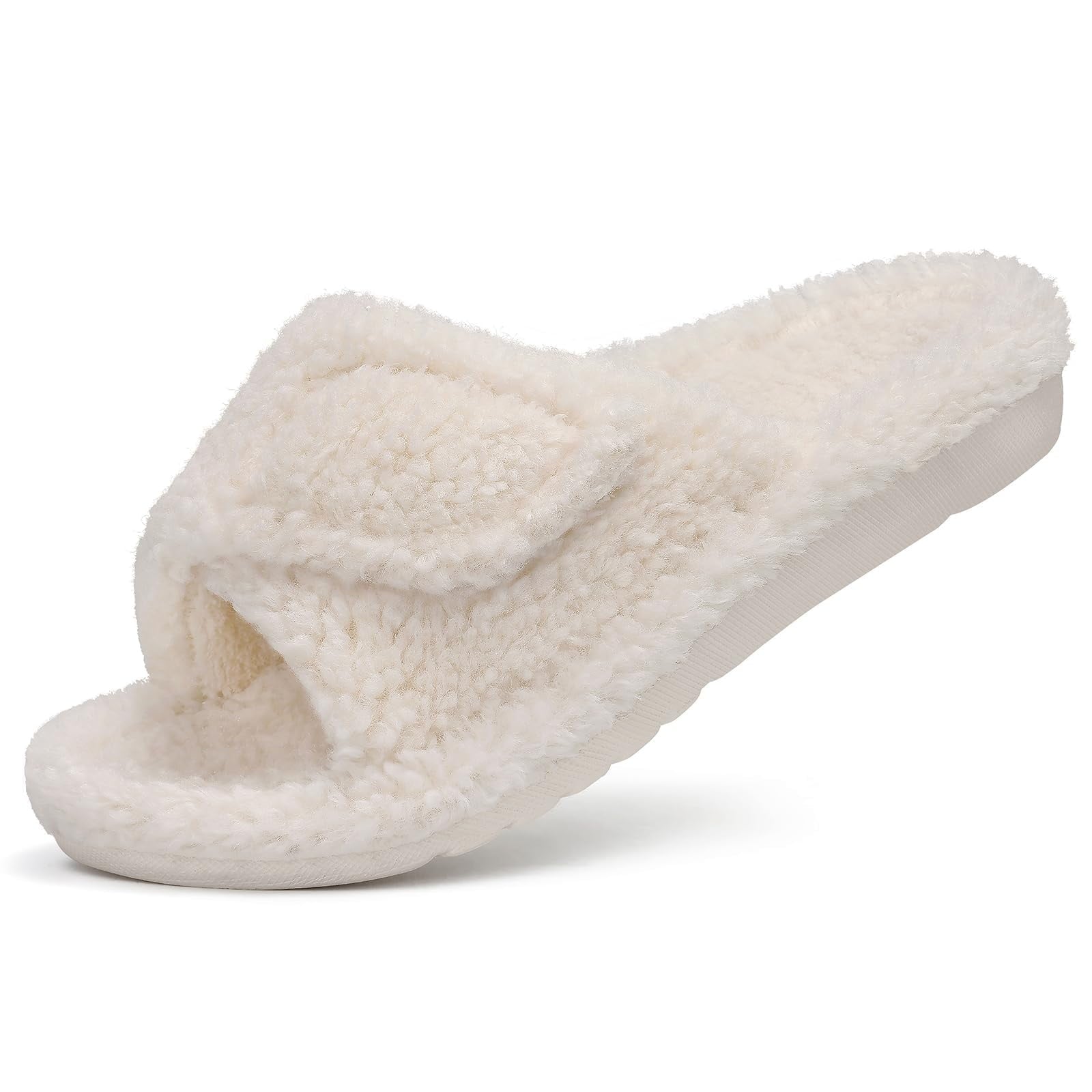 Litfun Women's Fuzzy Orthopedic Slippers with Arch Support Open Toe House Shoes
