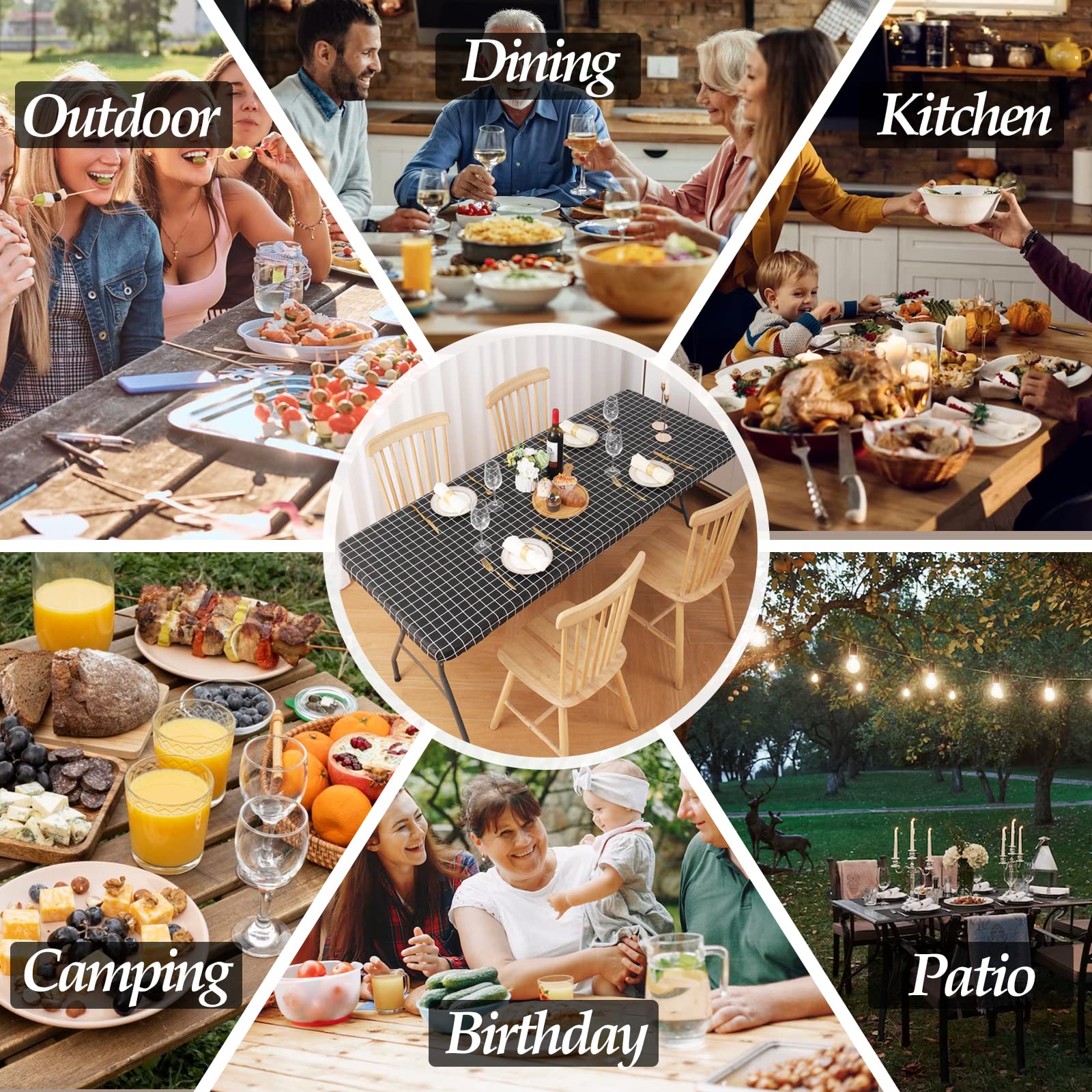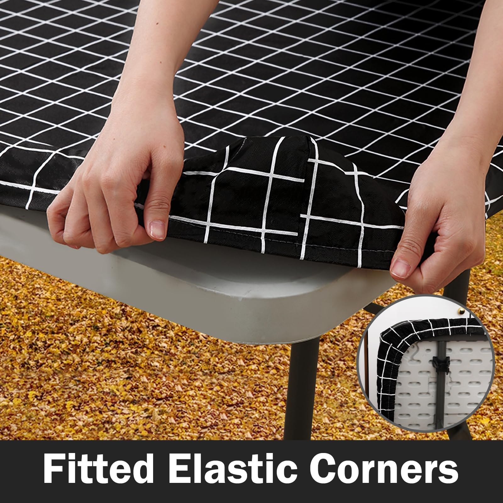 [Elastic Fit & Non-Slip] The elasticized edges of the tablecloth are designed so that the tablecloth fits the table perfectly. The fitted tablecloth won't move, whether it's accidentally pulled or a gust of wind blows, it won't affect your enjoyable dinner!